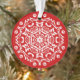 Ce mandala blanc est assis sur un arrière - plan rouge vif. La couleur est énergique et chaude. Partie de la collection Mola Mandala.