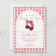 This stylish baby shower invitation, featuring a cherries and bow, elegant script typography and arch on a gingham background, can be personalized with all your special baby shower details and registry QR Code on the back. Designed by Thisisnotme©