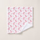 A seamless pattern featuring adorable pink cherries with playful hearts on a striped pastel background.