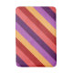 Eine mittelgroße Badematte mit einem farbenfrohen Motiv aus diagonalen Streifen in Kirschrot, Melonenrosa, Violett, Pflaume lila und Bananengelb.