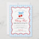Cherry Sweet Blue Coquette Gingham First Birthday Einladung