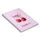 Cherry with Cute Pink Bow on Gingham Custom Name Notizblock