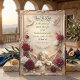 Transport your guests to an era of timeless romance with this opulent, Old World design featuring a violinist cherub and lush burgundy florals.