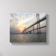 Diese Foto-Leinwand ist ein Bild eines Sonnenuntergangs an der Bay Bridge, die die Chesapeake Bay überquert. Das Wasser spiegelt den orangen, rosa und gelben Sonnenuntergang wider, als die Sets dieses wunderschönen Originalfotos.