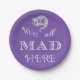Die Cheshire-Katze "von der Alicen im Wunderland" erscheint mit seinen Wörtern vom Buch, ", das wir alle hier" auf Lila oder der dunklen Hintergrundfarbe Ihrer Wahl WÜTEND sind, ein großes Party Papierplatte herzustellen. Zusammenpassende Einzelteile und viele mehr Alice im Wunderlandeinzelteile und -entwürfe sind in meinem Zazzle Speicher verfügbar.