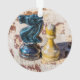 Vue rapprochée d'un vieux jeu d'échecs usagé, desséché et patiné sur un échiquier éteint. Pion rouge de bataille blanche et chevalier noir, ou kacker, ou cheval très vieux. Ils roulent à un rythme tranquille après le coucher du soleil et laissent de longues ombres derrière eux. Toute la gloire des batailles de championnat d'échecs est laissée dans le passé. Photographie texturée.
