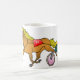 Cette conception est un cheval de course et buggy. Le cheval a un numéro 11 dessus. Ce modèle de cheval de course et de buggy a l'air superbe sur cette Mug