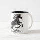 Profitez de votre boisson préférée avec cette tasse à café à deux tons qui présente une silhouette noire dynamique d'un cheval qui élève. La crinière et la queue qui s'écoulent captent l'esprit de force et de liberté, parfait pour les amateurs d'équitation et les amateurs de puissantes créations sur le thème occidental. Durable et élégante, cette tasse est idéale pour l'usage quotidien ou comme un cadeau réfléchi.