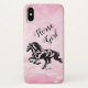 Personnalisez ce coque iphone unique de cellule de Cheval Noir "One of a Kind" ! Il présente une silhouette de cheval noir Galloping sur un Arrière - plan rose et blanc et les mots...."Fille du cheval" ! Design D'Art Original Par L'Artiste Kerry Miller.