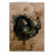 Un chevalier foncé offre une seule rose rouge sanguine, dans l'aquarelle grunge dégoulinante et style encre sur papier vieilli.