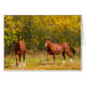 Chevaux de châtaignier marchant contre un arrière - plan de feuillage d'automne doré : une carte de note pour tous les amateurs de cheval.
