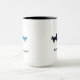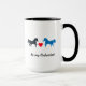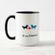numériquement paire de chevaux peints - un bleu clair, l'autre un bleu très foncé - se faisant face sur un coeur rouge, avec les mots "Be my Valentine". Cette tasse peut être utilisée par une personne de gauche ou de droite, car la même conception est de chaque côté de la tasse. Vous pouvez facilement insérer vos propres mots et changer la couleur de l'arrière - plan.