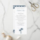 Blue Tropical Palm Tree Destination thé long programmes de mariage Avec chevron zigzag motif Sur le dos. Élégant programme de mariage sur la plage