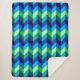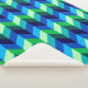 Une grande couverture sherpa au design motif coloré et sombre de chevrons en vert citron, bleu royal turquoise, bleu océan et bleu ciel.