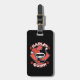 Karo Chibi Harley Quinn, als sie vor einer roten Polka Dot Diamond Kulisse mit ihrem Namen um sie geschrieben.