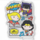 Karo Chibi Batgirl, Chibi Supergirl und Chibi Wonder Woman Woman tanzen in Action Comic Panels.