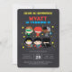Invitation toute votre famille et des amis à l'anniversaire de votre enfant avec ces invitations de tableau noir Chibi Justice League. Personnalisez en ajoutant tous les détails de votre fête !