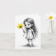 Eine Skizze eines jungen Mädchens mit langen Haaren, das eine gelbe Blume hält, während er sie mit mit Augen Wunder betrachtet.