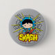 Karo aus Chibi Superman, der sich durch eine Ziegelmauer mit einem großen "SMASH" schlug!