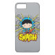 Karo aus Chibi Superman, der sich durch eine Ziegelmauer mit einem großen "SMASH" schleicht!