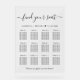 Sac à table en acrylique clair et chic pour mariage, inscrivez-vous jusqu'à 12 tables avec "trouvez votre siège" dans un script élégant avec des swashes, "Nous sommes si heureux que vous soyez ici", et vos noms et mariages date réunis par un coeur.