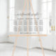 Chic mariage tableau de sièges clair acrylique pour jusqu'à 12 tables avec "nos gens préférés" dans un élégant script avec des swashes, vos noms et date mariage unis ensemble avec un coeur et "Nous sommes si heureux que vous êtes ici" en lettrage simple et moderne.