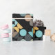 Schöne, zeitgenössische, helle Korallenorange, türkisblaue Aqua, staubige Rose rot-rot und schwarz-braun-gelb gefärbte geometrische Kreise und halbe Kreise Muster auf einem schwarzen Hintergrund. Elegantes, stilvolles und eklektisches minimalistisches Design für den künstlerischen angesagten Trendsetter, Vintage Retro-Kunststil oder abstrakten geometrischen Motivliebhaber. Erhältlich auf einer Vielzahl von modernen Handwerken und Büroprodukten. Zum Beispiel Umhüllung und Gewebepapier, Geschenketiketten, Taschen und Geschenkpackungen, Aufkleber, Bänder, Schreibwaren und Umschläge.