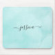 Chic Aqua Watercolor Calligrafy Script Mousepad