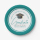 Diese schicken aquamarinen Teller für Graduiertengruppen mit Ihrem High School- oder Uni-Namen für die Klasse 2025. Passen Sie mit Ihrem geschlossen Jahr unter der eleganten, handgeschriebenen Drehbuch und Grau-Grau-Kappe für ein großartiges personalisiertes Party-Dekor.