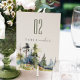 Chic Aquarell Pine Forest Landschaft Hochzeit Tischnummer