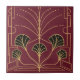 Art Deco Spuckbrunnen Fliesen mit Imitaten metallisch & leicht glänzende Effekte in Gold und Schwarz auf einem kirschroten Hintergrund. Ideal als Trivet oder für ein stilvolles Retro-Bad mit Fliesen-Wohngestaltung. Entworfen von Anne Londez.