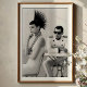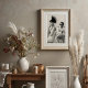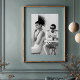 Tauchen Sie ein in eine Szene von raffiniertem Stil mit diesem faszinierenden Schwarz-Weiß-Kunstdruck. Mit einer Frau mit einem außergewöhnlichen, spiky avantgardistischen Haarstil und einem auffallenden weißen Kleid mit einem kühnen Polka Dot High Kragen sitzt sie in kontemplativer Eleganz. Ihr akribisches Make-up und ihr geplantes Verhalten strahlen eine coole Zuversicht aus. Im sanft verschwommenen Hintergrund sitzt ein geheimnisvoller Mann in einer knusprigen weißen, vom Militär inspiriert Uniform und einer dunklen Sonnenbrille an einem Tisch und fügt der Komposition eine faszinierende Tief- und Erzählschicht hinzu. Dieses in atemberaubend Schwarz und Weiß ausgelegte, kontrastreiche Werk betont die komplexen Details, dramatischen Silhouetten und die einzigartigen Texturen ihrer Kleidung. Ideal für moderne Wohnräume, Modestudios oder jede Dekoration, die eine Touch von einzigartiger Eleganz, künstlerischem Flair und einer rätselhaften Modeaussage sucht, lädt dieser Aufdruck die Zuschauer ein, die unausgesprochene Geschichte zwischen den Figuren zu erleben.