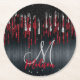 Chic Black and Red Silver Glitzer Tropfen Monogram Runder Pappuntersetzer