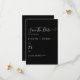 Die elegante Save the Date-Karte mit schwarzem Hintergrund und schlichter weißer Schrift zeichnet sich durch ein minimalistisches Design aus. Es ist leicht anpassbar und ideal für Paare, die eine einfache und moderne Art suchen, ihren Hochzeitstag zu teilen. Matching-Elemente verfügbar.