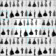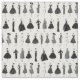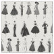 Retro-Modestoff am Hof. Dieses wunderschöne Schwarz-Weiß-Muster besteht aus Vintagen Modebildern hübscher Damen mit eleganten Kleider und Outfits. Chic Stoff für Modeprojekte.