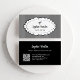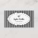 Diese eleganten, skurrilen Visitenkarten verfügen über einen handgezeichnet, gewellten und polka gepunkteten Rahmen mit einem trendigen Bogen auf einem schicken, schwarz-weiß gestreiften Hintergrund. Die Rückseite der Visitenkarte ist schwarz und hat einen scannbaren QR-Code. Ideal für jeden weiblichen, stilvollen Beruf oder jedes Geschäft, wie Wellness-Center, Salon, Mode, Boutique oder Vintage Bekleidung.