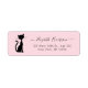 Niedliche und gürtnig rosa Rücksendeadressen-Aufkleber mit einer schicken Retro-Schwarzkatze mit rosa Nase und Kragen und Ihrem Namen in einem stilvollen trendigen Drehbuch mit Wimpern.