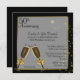 Elegante fünfzigste Hochzeitstag Party Einladung in Schwarz mit einem goldfarbenen Rand halb durchsichtigen Textbereich, in der Mitte. Die Grafik zweier Champagnergläser und goldener Tonstars runden diese atemberaubende Einladung ab. Schwarzer Text ist vollständig an den Anzug Ihrer Veranstaltungsbedürfnisse angepasst. Eine schöne Einladung, auf die Sie stolz sein werden.