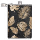 Chic Black Gold Tropical Blätter Flachmann