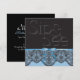 Schwarz mit blauen Akzenten - Vintage schwarze Spitze mit farbenprächtiger Kulisse und schönem blauem Band und Bogen - schlichter, aber sehr klassischer Sip and See Baby Einladung HINWEIS: Auf dieser Karte ist kein echtes Band oder Spitze - sie sind künstlerisch so gestaltet, dass sie real erscheinen.