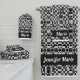 Chic Black & White Floral Checkerboard Custom Name Badhandtuch Set