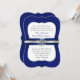 Elégante invitation de mariage d'hiver faite en bleu sur un motif de flocon bleu, avec une zone de texte bordée d'argent blanc en forme de support. Graphiques d'un riche ruban de satin et d'argent bleu foncé, court au milieu, de l'invitation, et est décoré avec un ton d'argent et diamant à l'aspect bijou de flocon de neige. Personnalisez le texte noir et bleu pour répondre à vos besoins. Choisissez parmi de nombreuses options de stock de carte différentes pour le look que vous préférez. Produits correspondants disponibles.
