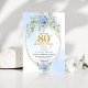 Chic Blue Floral Gold 80th Birthday Invitation Einladung