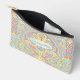 Dieser Toilettenbeutel, Reisezubehör oder das Make-up essentials Beutel Design verfügt über eine atemberaubende Kombination aus hellen und hellen Fuchsienrosa, pastellfarbenen violetten, lavender, lila, aqua türkisblau und limig grün Retro chic abstrakte Muster Design. Die Vielfalt dieser Farbkombination und die scharfen, wirbelnden Formen erzeugen einen dynamischen und rhythmischen Effekt. Das Muster ist verziert und elegant, mit einer Touch von Funkness und Hipster Flair. Es gibt auch Raum für die Anpassung oder Personalisierung mit einem Monogramm oder eine Initial Ihrer Wahl. Ob Sie nach einem schicken und modernen Stil oder einem Vintagen Retro-Trend suchen, dieses Muster wird Ihren Geschmack und Ihre Persönlichkeit Anzug geben.