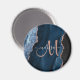 Chic Blue Rose Gold Agate Script Monogram Custom Magnet
