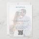 Schöne elegante Hochzeitseinladung in einem blauen Blumenrahmen-Design. Dieses moderne Design ist perfekt für diejenigen, die Einfachheit mit einer Touch von Chic Liebe. Ideal für Hochzeiten und besondere Anlass wie Party, Geburtstage, Quinceaneras, süsse 16 oder andere Feste. Auf der Vorderseite der Einladung stehen Rose und Pflanze mit blauen Untertönen. Auf der Rückseite gibt es einen QR-Code, der Sie zu einer QR-Code-generierten Website führt, wenn Sie sich für die Verwendung entscheiden. Auf der Rückseite befindet sich auch ein verblasstes fotografisches Design, das Sie leicht entfernen können, um Ihr persönliches Foto einzufügen.