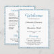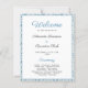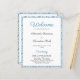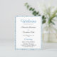 Ein raffiniertes Design gerahmt mit einem klassischen blauen Toile de Jouy Blumenmuster. Die zarte, Vintag inspiriert Grenze verleiht zeitlosen Charme, der sich ideal für traditionelle oder landschaftliche Feiern eignet. Einfach mit Ihren Veranstaltungsdetails anpassbar.