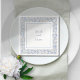 Chic und frisch. Diese gemusterte Blumenserviette besticht durch ihren jugendlichen Charme. Die Vorlage enthält einige Namen, die mit einem staubblauen Blumenrand gerahmt sind. Dieser Artikel ist Teil einer kompletten Hochzeitssuite, die Einladungen, RSVP-Karten und mehr beinhaltet.