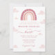 Chic Boho Rainbow and Clouds Pastel Pink Birthday Einladung