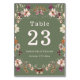 Chic Boho Wildblume Rustic Sage Green Wedding Tischnummer